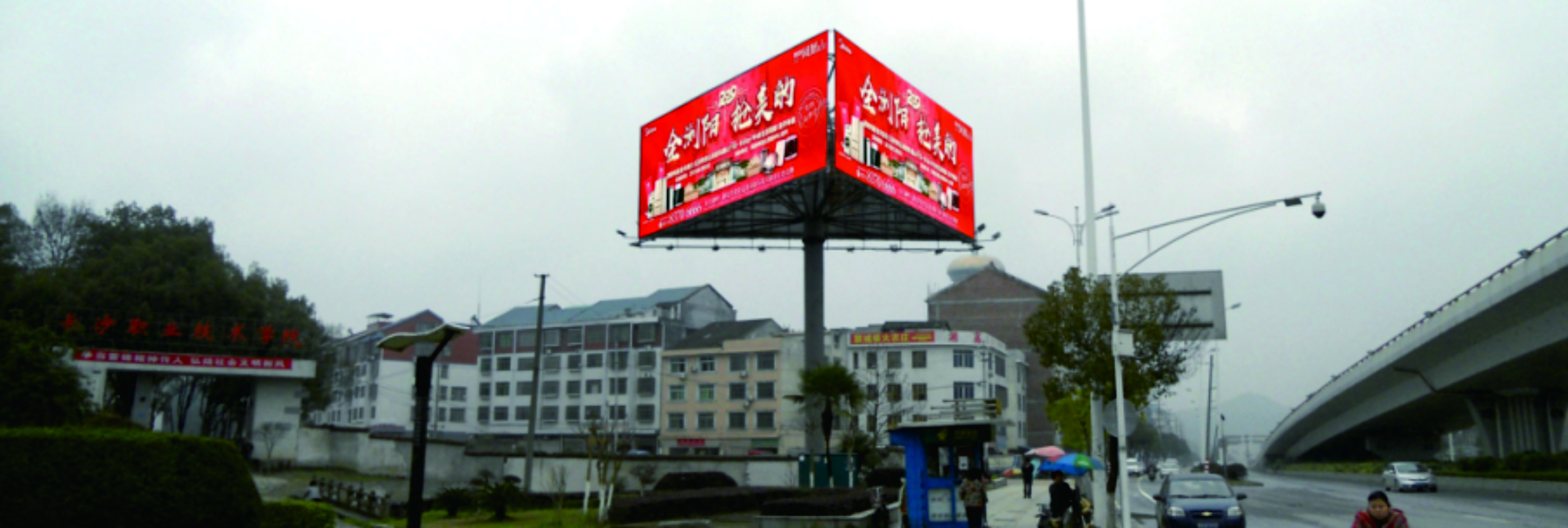 浏阳将军广场立交桥三面立柱广告